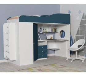 Кровать-чердак Кадет-1 с металлической лестницей Дуб молочный/Лазурь